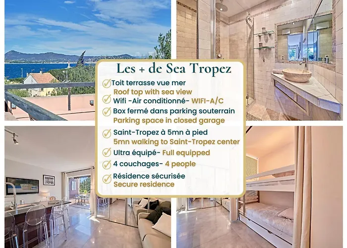 Sea Tropez-Grand Studio, Terrasse Vue Mer, Garage dairesinde tam donanımlı mutfağın yanı sıra kahve/çay makinesi, uydu kanallı düz ekran televizyon, duman detektörleri içeren odalar bulunmaktadır. Église Notre-Dame-de-l'Assomption de Saint-Tropez daireden 950 metre uzaklıkta olup Musée de l'Annonciade 600 metre uzaklıktadır.